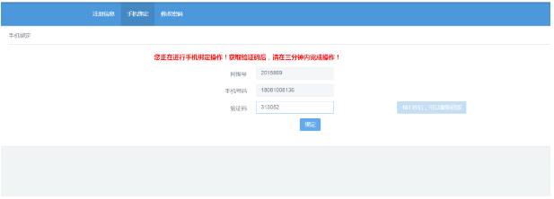 (三)信息保存成功后,系统生成网报号,系统自动跳转至手机绑定页面,若无跳转可手动点击页面的上方的“手机绑定”。