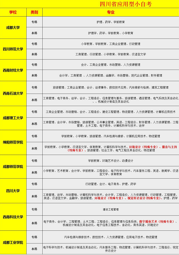 成都大学、四川师范学院、西南财经大学、西南石油大学、成都理工大学、绵阳师范学院、成都师范学院、四川大学、西南科技大学、成都工业学院